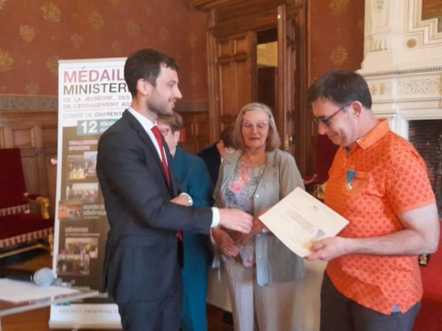 Félicitations à Francky notre secrétaire, qui a reçu LA MEDAILLE DE BRONZE DE LA JEUNESSE, DES SPORTS ET DE L' ENGAGEMENT ASSOCIATIF par le Préfet de Charente Maritime.