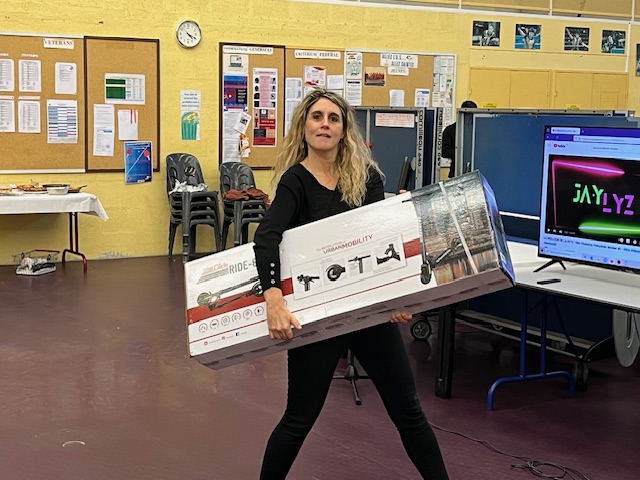 Un moment de partage apprécié par tous les participants avec tirage au sort de la tombola avec la trottinette electrique gagnée par Virginie, aux anges.
